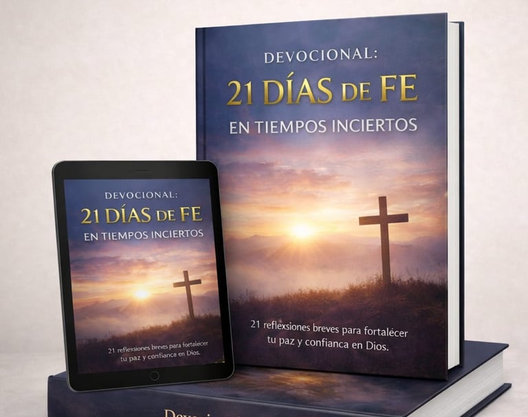 Devocional: 21 días de fe en tiempos inciertos. Transformarás la ansiedad en confianza diaria. Durante 21 días fortalecerás tu paz interior con reflexiones bíblicas prácticas y centradas en Cristo. No es teoría profética. Es alimento espiritual para el presente. Resultado: fe firme cuando el entorno parece inestable.